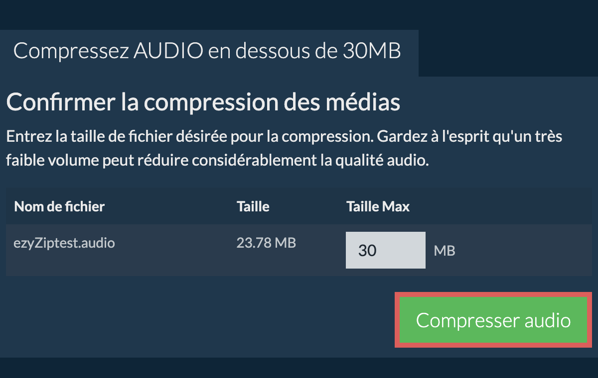 Est-il sûr de compresser AUDIO à 30MB en utilisant ezyZip?