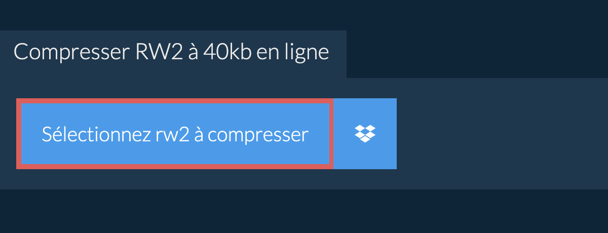 ezyZip est un ensemble d'utilitaires pour gérer les fichiers compressés. C'est un utilitaire en ligne gratuit pour compresser vos fichiers à une taille plus petite, y compris ce RW2 à 40kb file size reducer. Pas besoin d'installer de logiciel supplémentaire. Il prend en charge une myriade d'autres options de compression d'image aussi.