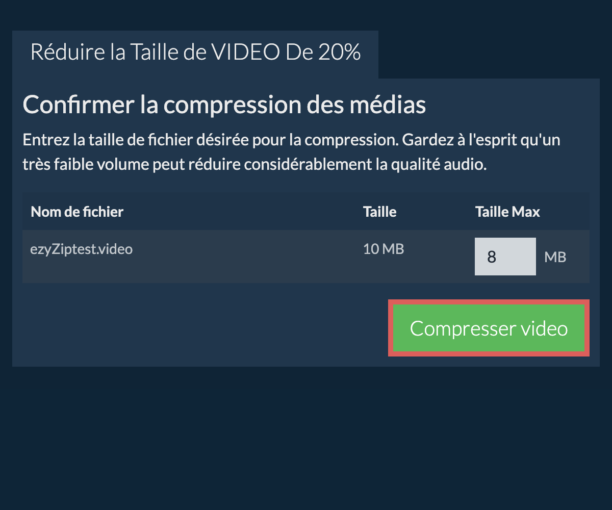 Voici les étapes pour réduire la taille de video de 20% en utilisant ezyZip.