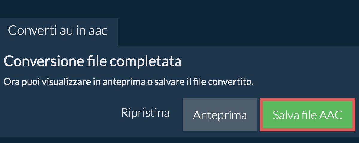 Clicca su "Salva file AAC" per salvare il file AAC convertito nella cartella di destinazione selezionata.