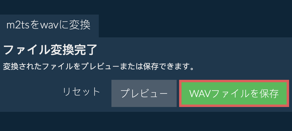 "変換したWAVファイルを保存"をクリックして、変換したWAVファイルを選択した保存先フォルダーに保存します。