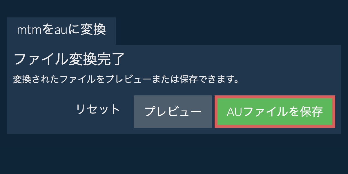 "変換したAUファイルを保存"をクリックして、変換したAUファイルを選択した保存先フォルダーに保存します。