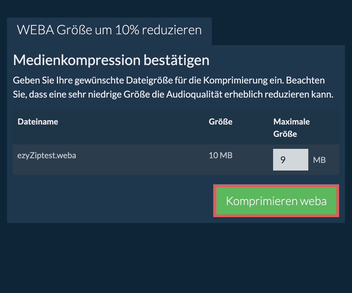 Ist es sicher, WEBA auf 10% mit ezyZip zu komprimieren?