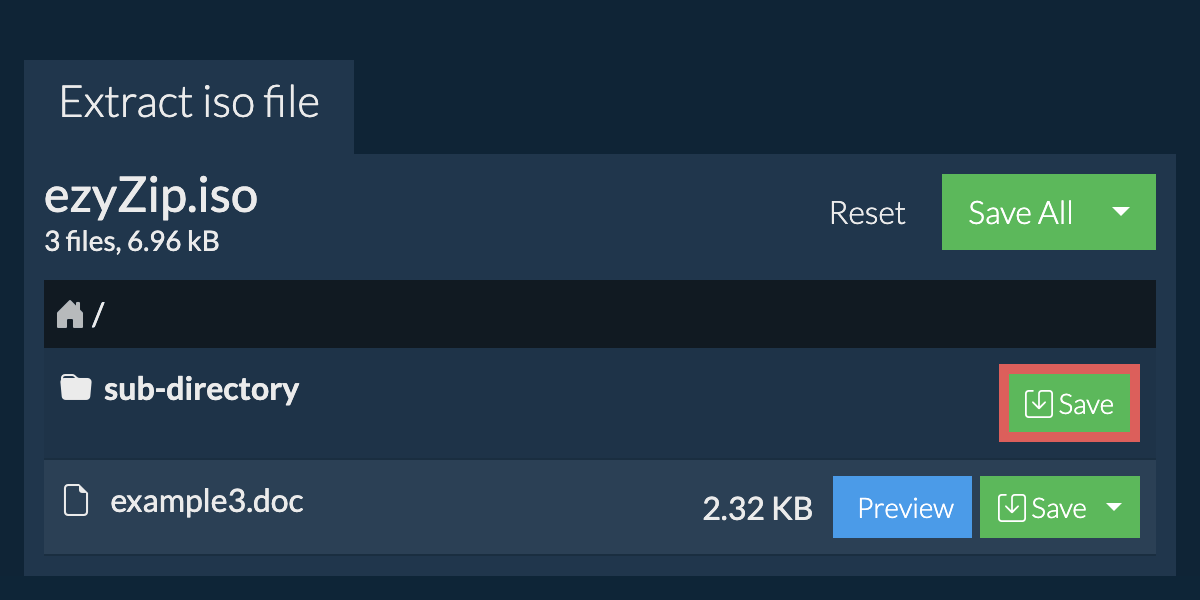Some newer browsers allow the saving of multiple files & folders into a designated target folder in one go. If you wish to extract all files in the ISO archive and maintain existing folder structure, follow the steps the below: