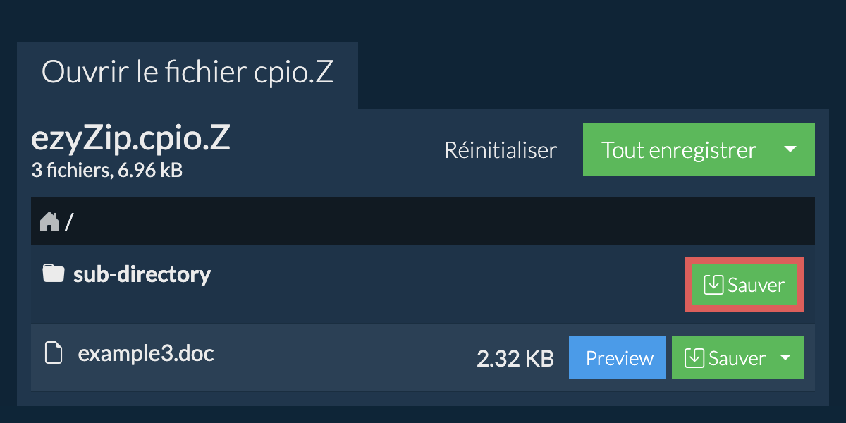 Une fois que vous avez sélectionné le fichier CPIO.Z, il sera téléchargé dans votre navigateur et son contenu sera affiché.