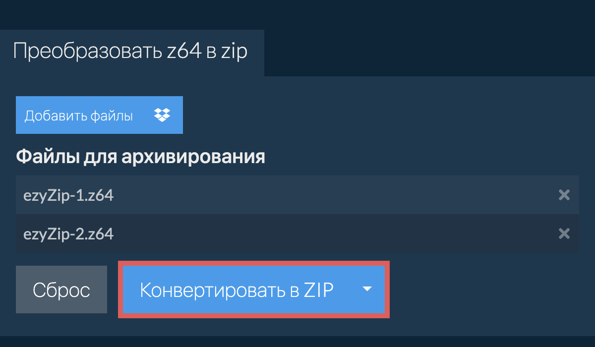 Вот шаги для преобразования Z64 в ZIP-архив с помощью ezyZip.