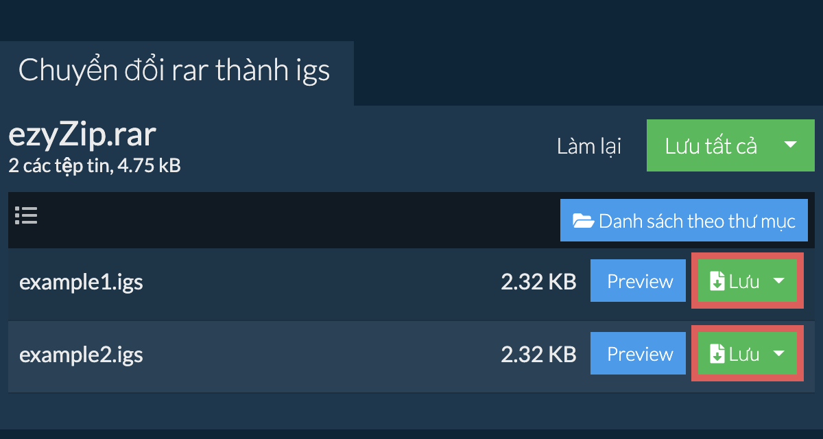 Nhấp vào nút "Lưu" màu xanh lục để lưu tệp IGS riêng lẻ vào ổ đĩa cục bộ của bạn.